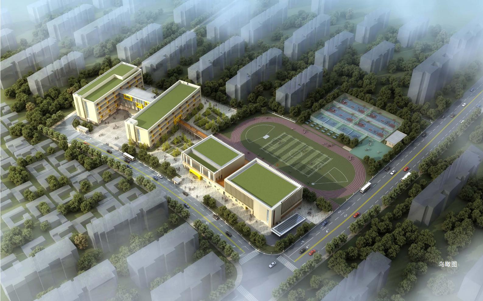 本項目建筑整體設(shè)計大方、莊重、現(xiàn)代,利用景觀平臺和風(fēng)雨連廊最大限度地在場地中引入景觀,活化空間,在場地和河道間、建筑與場地間形成自然的景觀延續(xù)。本項目設(shè)計方案結(jié)合地形特征,以豐富的形體變化和和諧的材質(zhì)搭配為音符,勾勒出現(xiàn)代建筑特有的韻律。在滿足使用功能和經(jīng)濟(jì)性的前提下,將建筑的美感和時代感最大化的呈現(xiàn)出來。教學(xué)樓呈工”字型布局,南北主樓功能均為主要救空,中間聯(lián)絡(luò)部分為衛(wèi)生間等輔助房間,使教學(xué)空間更好的利用自然光照條件。