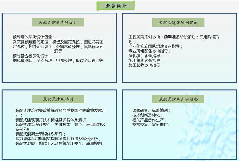 承攬【裝配式建筑】設(shè)計(jì)、咨詢、培訓(xùn)、檢測認(rèn)證、產(chǎn)研等業(yè)務(wù)